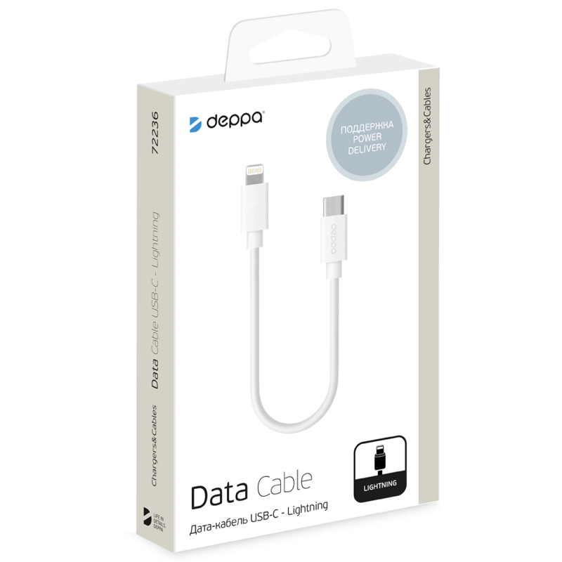 Кабель Deppa 72236, USB-C → Lightning, длина 1.2 м