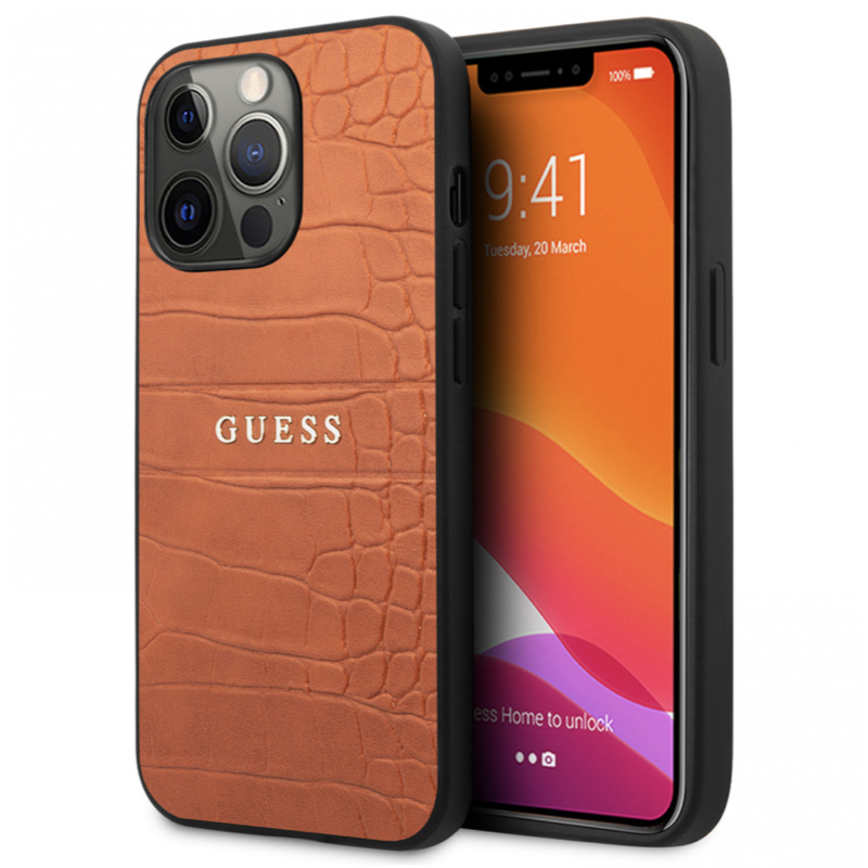 Чехол iPhone 13 Pro Накладка Кожзам Guess Croco with metal Logo Hard